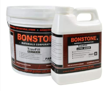 TravFill™ is a two-component, lime-based, latex modified filler material for travertine floors, fabrication of stone slabs and other porous stones.
