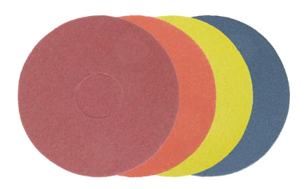13 Inch Magic Renova Pad Set includes: 13 Inch red, orange, yellow, blue abrasives, green high gloss pad, double sided velcro pad holder.