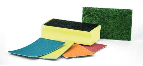 Each different color pad indicates a specification of each step of the process to getting the results you desire. Use clean water with each step. Repeat the process in areas where needed.