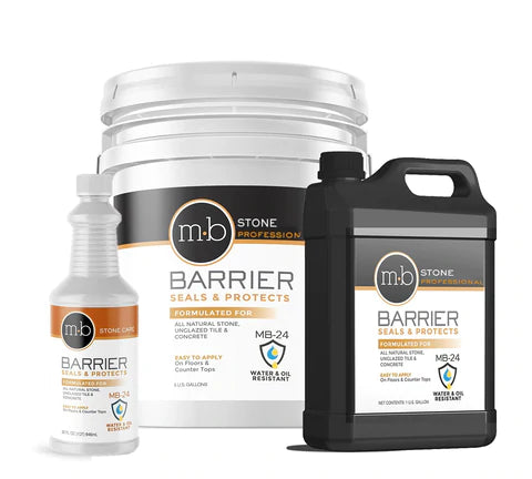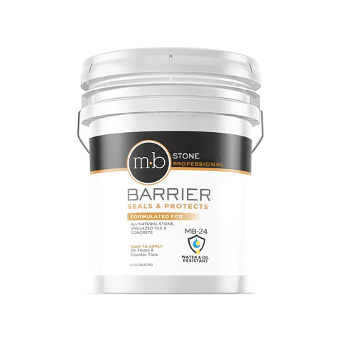 A formidable water based penetrating sealer for all porous natural stone, concrete, terrazzo, terracotta, saltillo, slate and grout. MB-24 Barrier will provide excellent hydrophobic and oleophobic protection, stain resistance and easier stain cleanup.