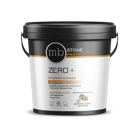MB ZERO+ Marble Polishing Powder was designed to amaze you with outstanding results! It is easy to use, less aggressive than most polishing powders, and produces superior clarity and shine, thus allowing you to polish to a high gloss. Zero+ is a specially formulated, extremely unique powder for all calcite-based stones that creates a tremendously high shine with Zero oxalic acid. The Zero+ is milled to a very fine talc consistency yet is more effective than traditional powders on sensitive or hard to polish stones such as white, black, brown marbles and serpentines.
